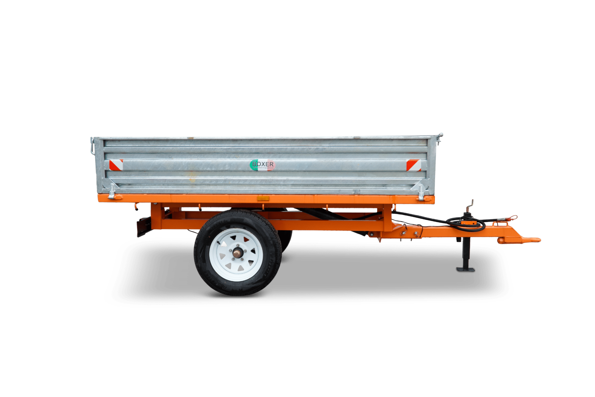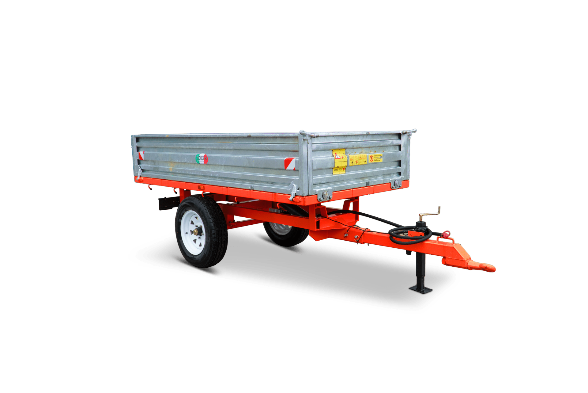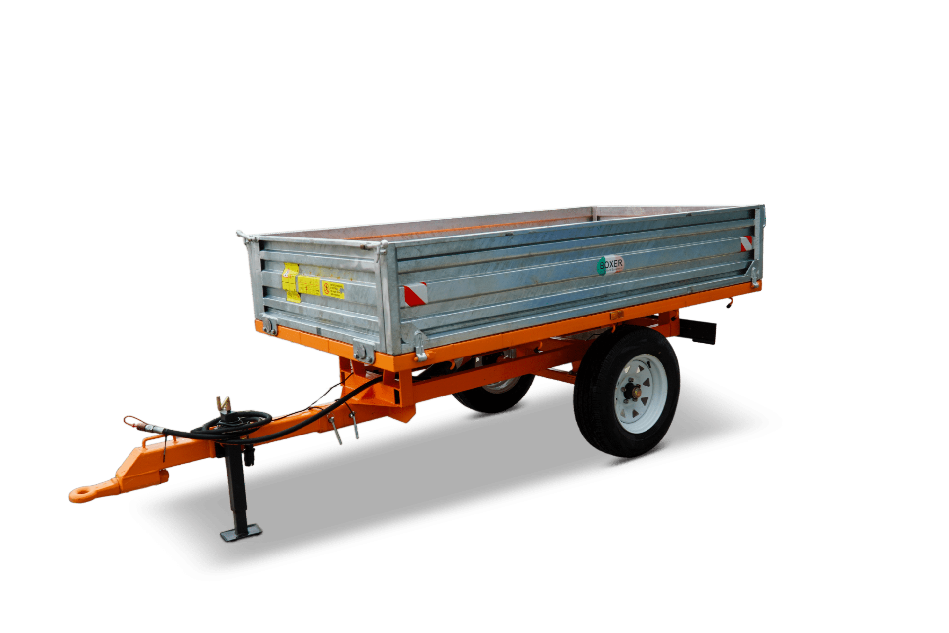 Deze 1 of 2 assige kipwagens zijn geschikt voor compact tractoren. Voorzien van gegalvaniseerde openklapbare zijborden, draaibaar trekoog en mechanische steunpoot. De achterslag is boven scharnierend en de kipper is hydraulisch kippend.