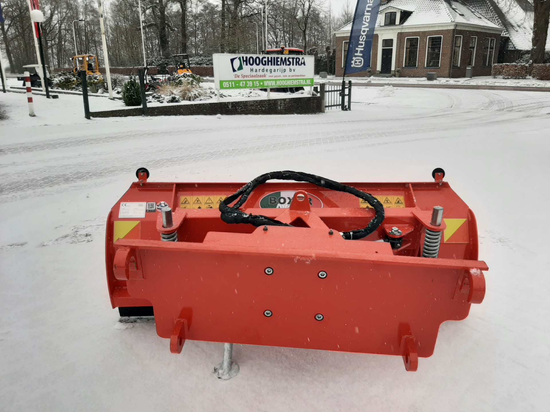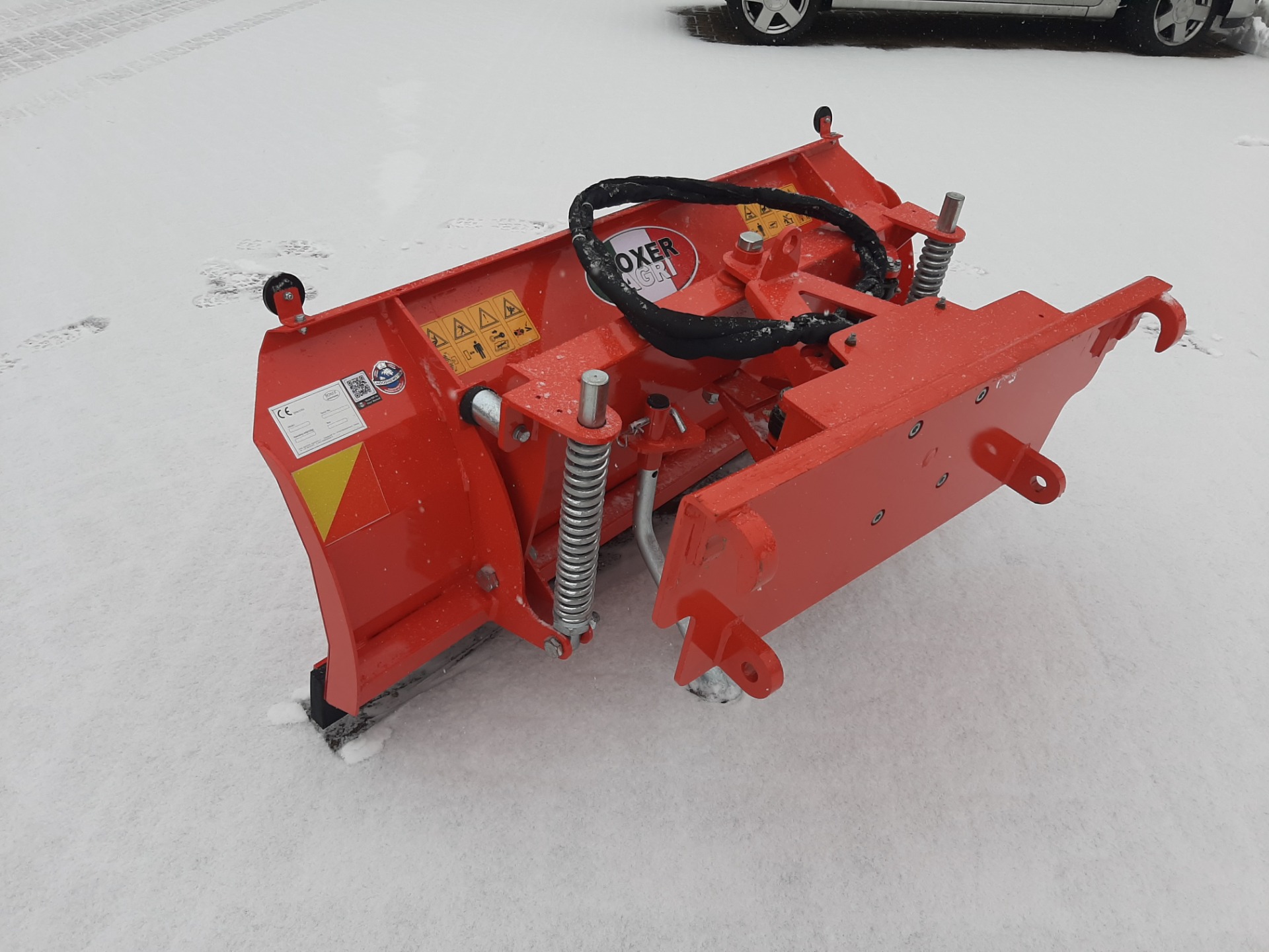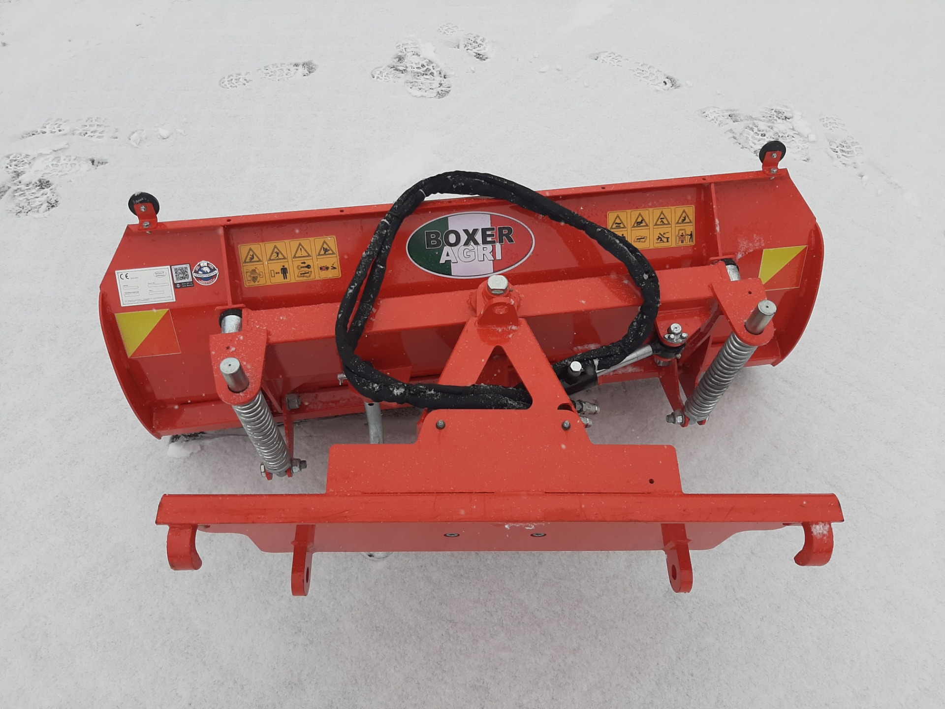 De hydraulisch verstelbare sneeuwschuif voor tractoren van 25 tot 70 Pk en shovels. De hoogte van het schuifblad is 86 cm en hydraulisch verstelbaar. De schuif is uitgevoerd met vervangbare rubberen strip en geveerde uitbreekbeveiliging.