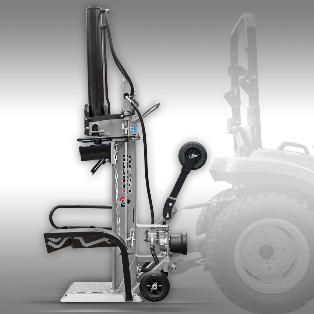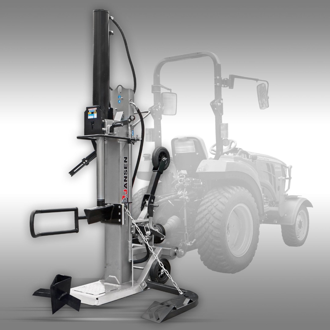 De enorme splijtdruk van 30 ton wordt door middel van een trekker/tractor (aandrijving via de aftakas, deze is niet bij de levering inbegrepen) gegenereerd.